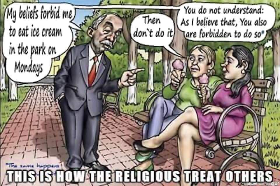 Water me fait penser à cet illustration! https://pbs.twimg.com/media/CsRevW7UsAAtqv8.jpg L'homme dit à ces deux femmes qu'il ne peux pas manger de la crème glacé un lundi, ca sa religion l'interdi. Ce qui est la même chose pour eux selon sa croyance. Mais on peut le changer un peu avec: CitationJe ne veux pas entendre ou lire à propos de Trump, donc vous ne devrez pas en écrire et en parler de lui! @water, tu peux chialer tant ce que tu veux, tu nous enlèvera pas notre droit de qui ou de quoi qu'on veut discuter! |